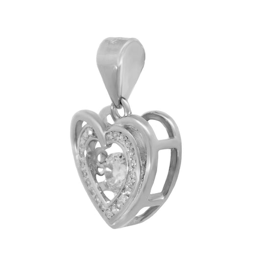 Sterling Silver CZ Heart Rhodium Pendant
