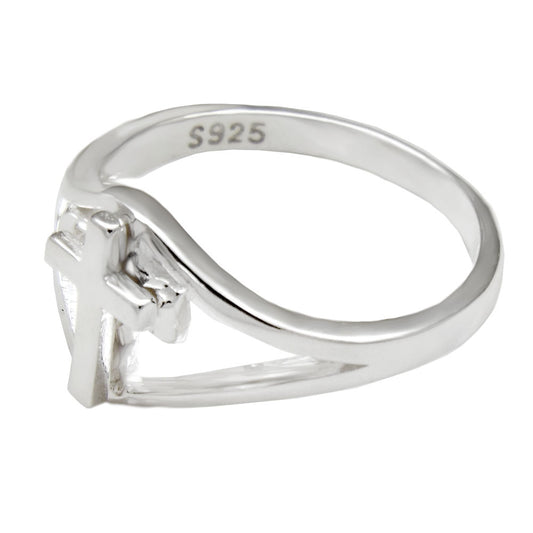 Sterling Silver Diamond Cut Cross Ring