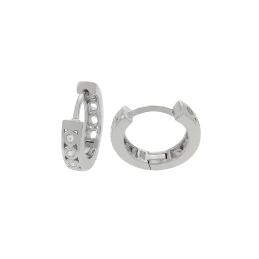 2 Lines Cubic Zirconia Huggie Rhodium Hoop Earrings
