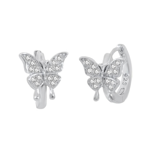 CZ Butterfly Rhodium Huggie Hoop Earrings