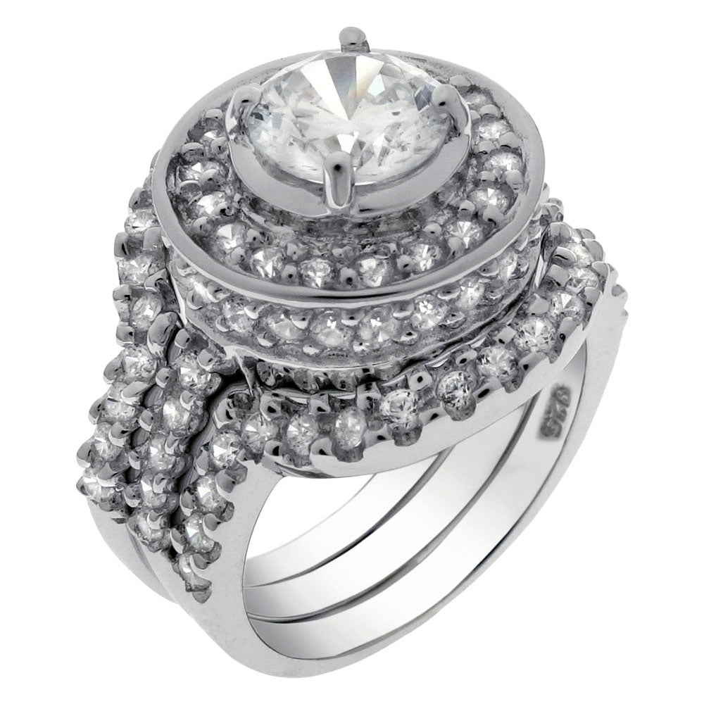 8mm Round CZ 3 Pieces Halow Wedding Ring Set