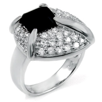 Black Onyx Cubic Zirconia In Sterling Silver Cluster Ring