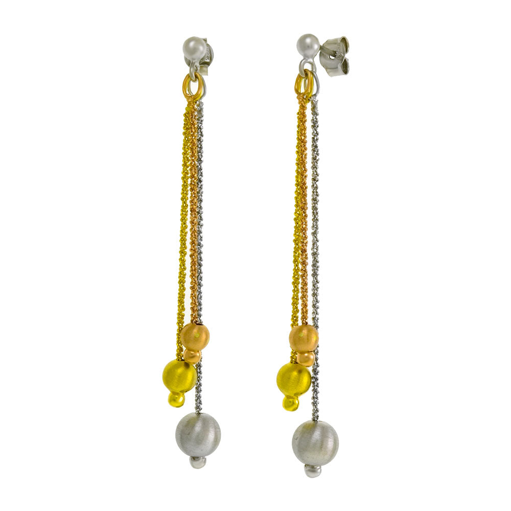 Italian Sterling Silver 3 Strand Chain W Satin Balls Rhodium Dangle Earrings