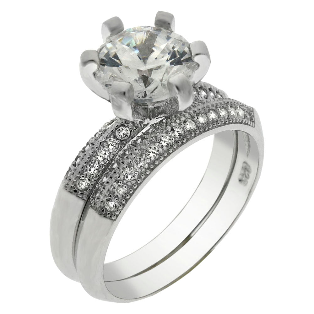 Sterling Silver 7MM Round CZ 6 Prong Wedding Ring Set